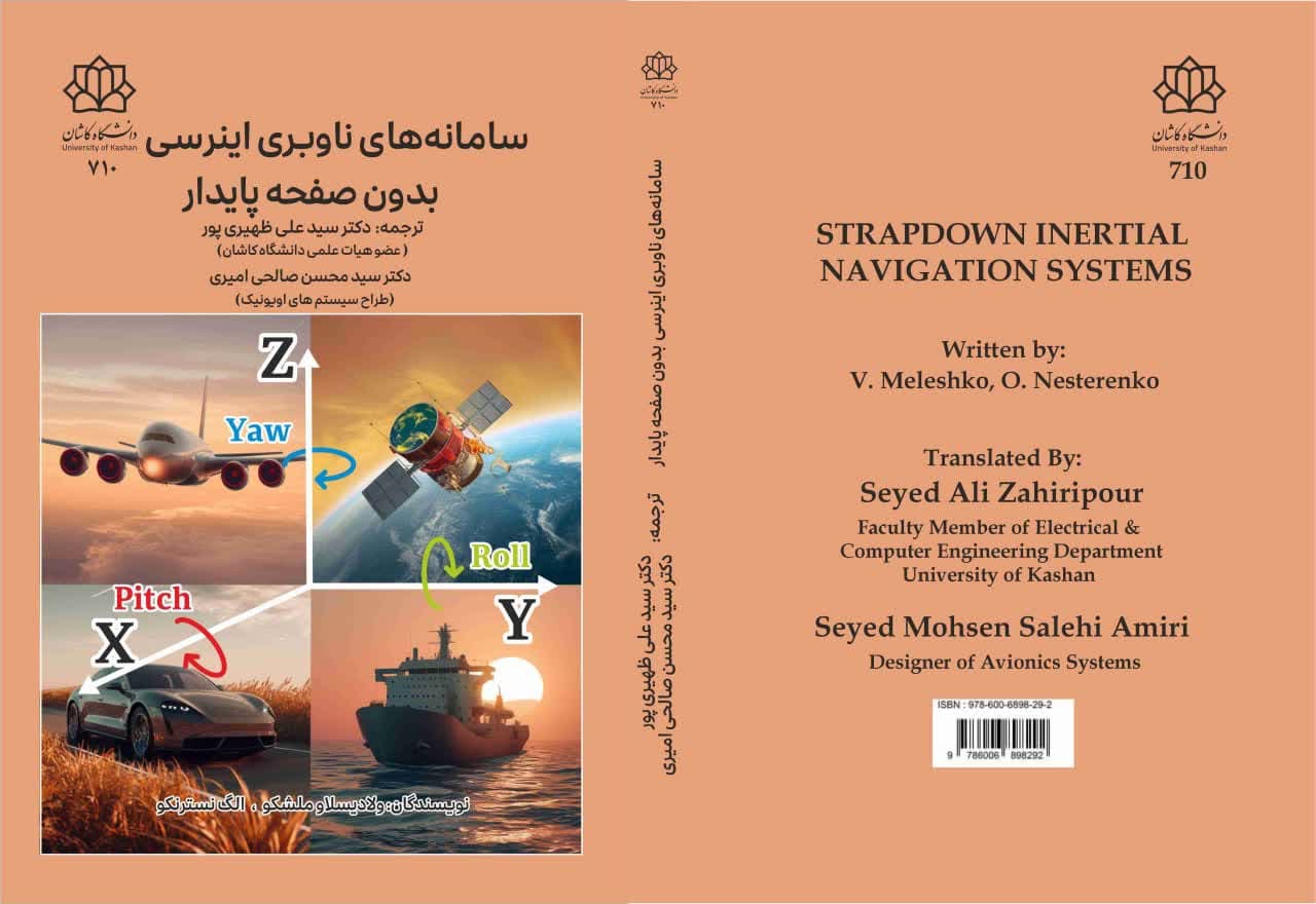 کتاب ترجمه سامانه های ناوبری اینرسی بدون صفحه پایدار توسط دکتر سید علی ظهیری پور عضو هیئت علمی دانشکده مهندسی برق و کامپیوتر و گروه کنترل دانشگاه کاشان در شهریور ۱۴۰۳ منتشر شد. در این کتاب انواع الگوریتم های ناوبری اینرسی تشریح شده و روش های بهبود خطای ناوبری اینرسی شامل اصلاح نرم افزاری و یا استفاده از سامانه های کمک ناوبری مورد بحث و تحلیل قرار گرفته است.
