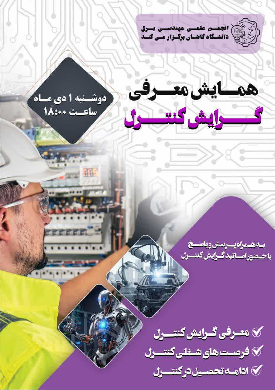 در این جلسه، با حضور اساتید محترم و دانشجویان رشته برق، همچنین افرادی از صنعت در حوزههای کنترل، به بررسی و انتخاب گرایش دانشجویان پرداخته خواهد شد.